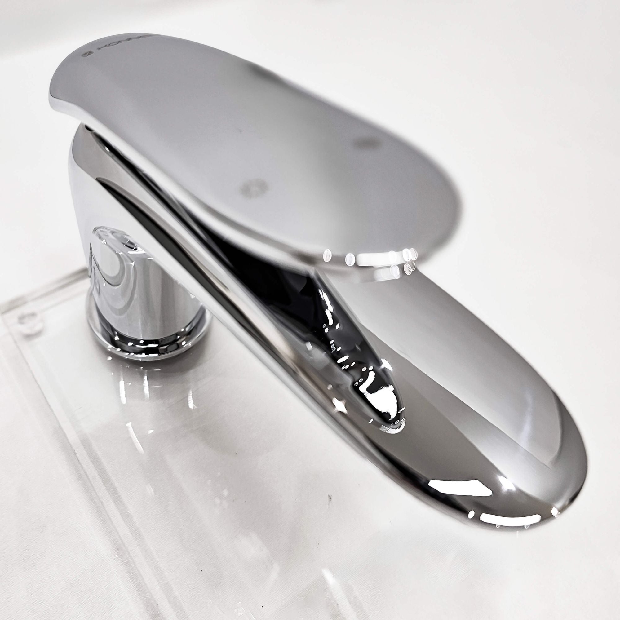 A Torneira Curves para Banheiro, com bica baixa, é a escolha ideal para quem procura estilo moderno sem abrir mão da funcionalidade. Com acabamento cromado e design arrojado, esta peça destaca-se em banheiros contemporâneos e coloridos.