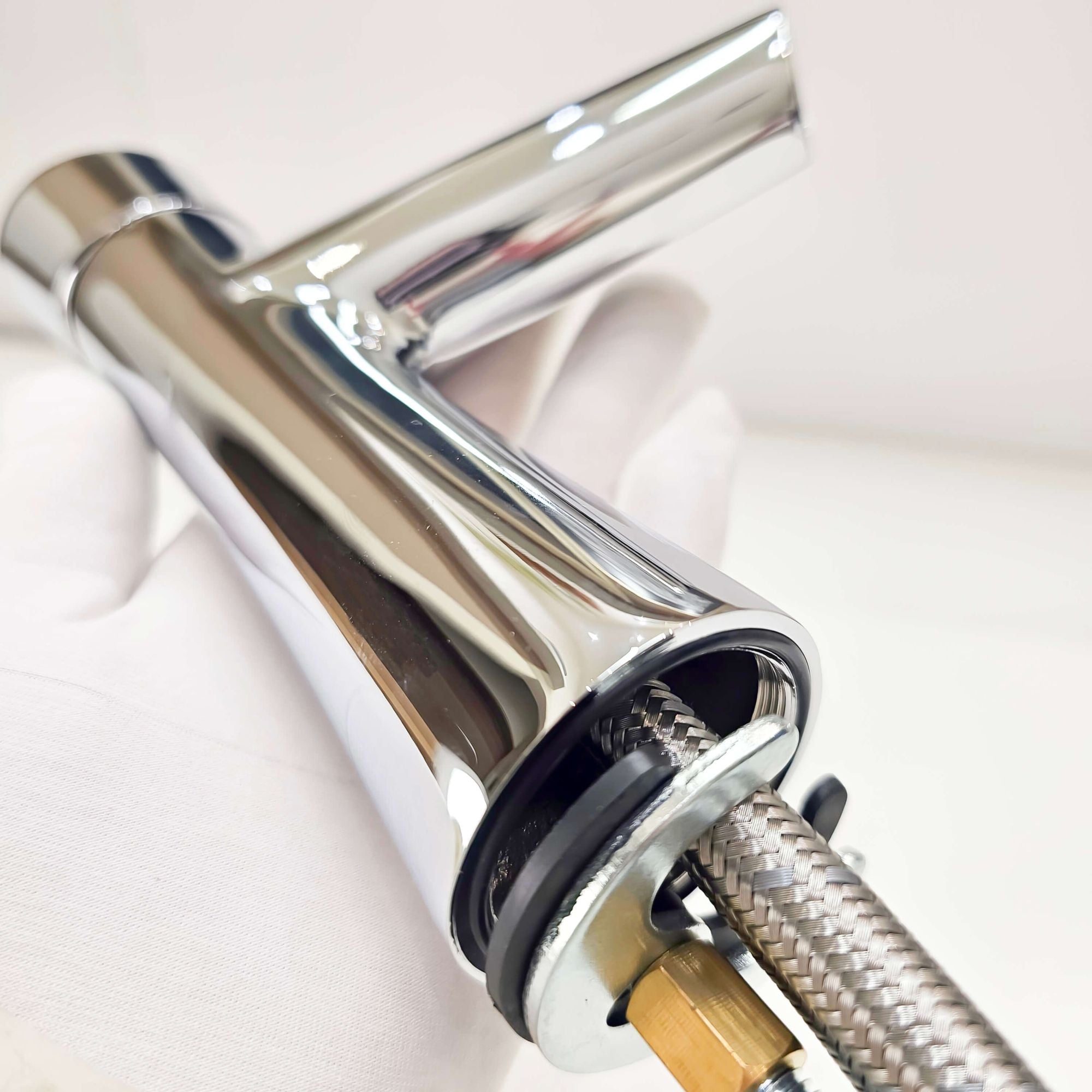O misturador monocomando permite ajustar rapidamente a temperatura e o fluxo de água, proporcionando conforto diário e eficiência no uso da água. O design único da bica alta oferece espaço extra para cubas de apoio, tornando o quotidiano mais prático, enquanto o acabamento cromado confere elegância duradoura ao ambiente.