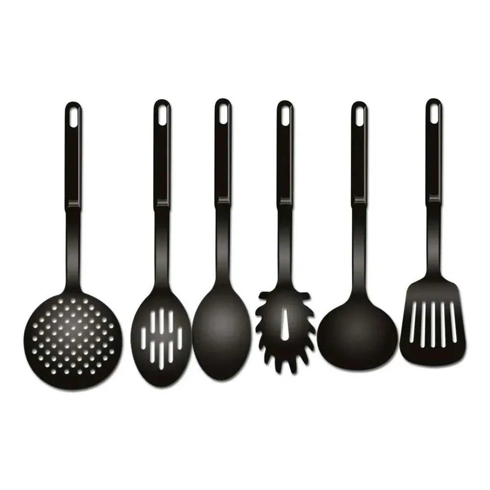 Kit Utensílios De Cozinha Nylon Preto Completo Para Chefs