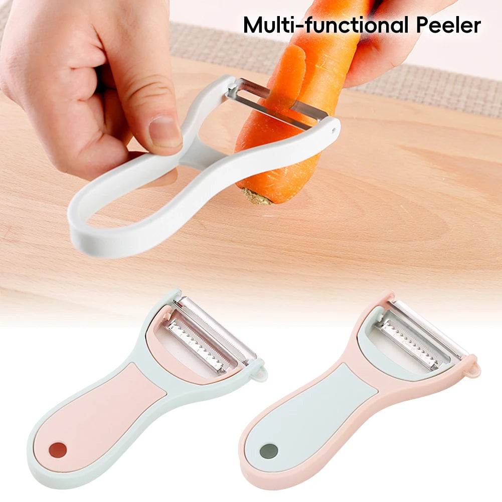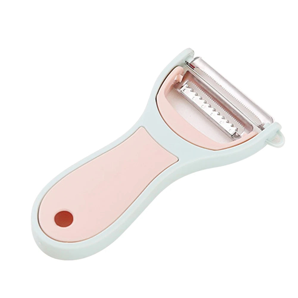 Descascador e Ralador de Vegetais Portátil 2 em 1, pensado para quem prepara refeições veganas e procura praticidade na cozinha. Esta ferramenta dobrável reúne duas funções num único utensílio resistente, com lâminas de aço inoxidável para cortes precisos.