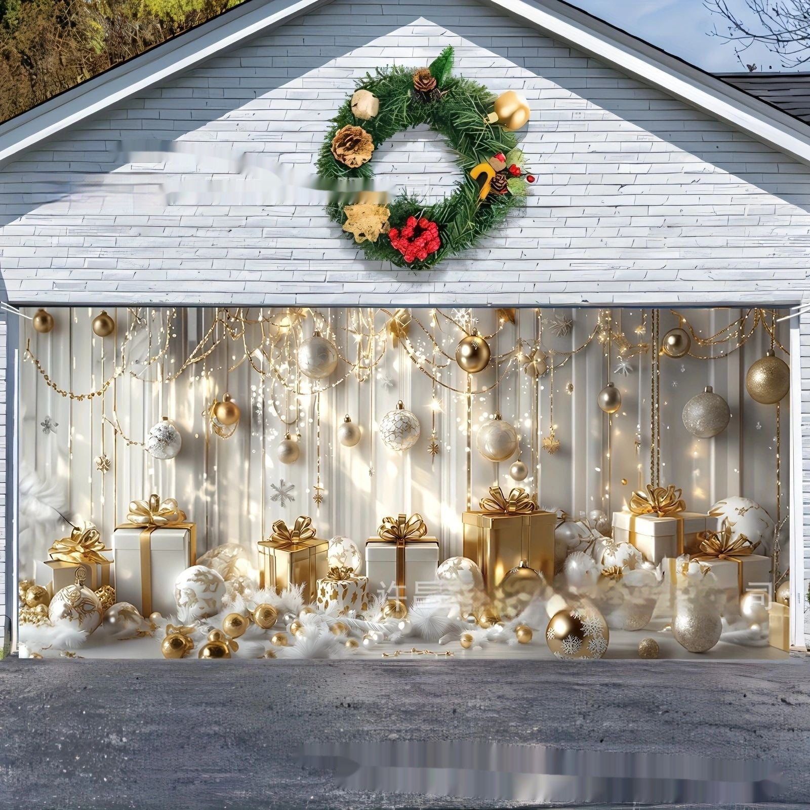 Transforme espaços comuns em cenários festivos com este banner de bolas de Natal em tecido. Ideal para festas, lojas ou uso doméstico, oferece um fundo elegante que valoriza qualquer ocasião.