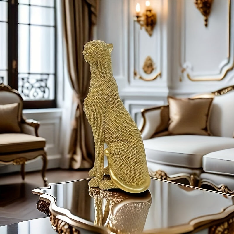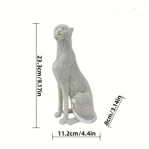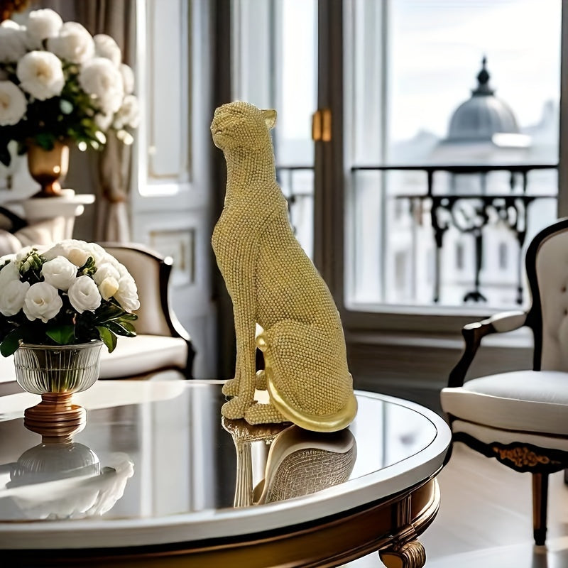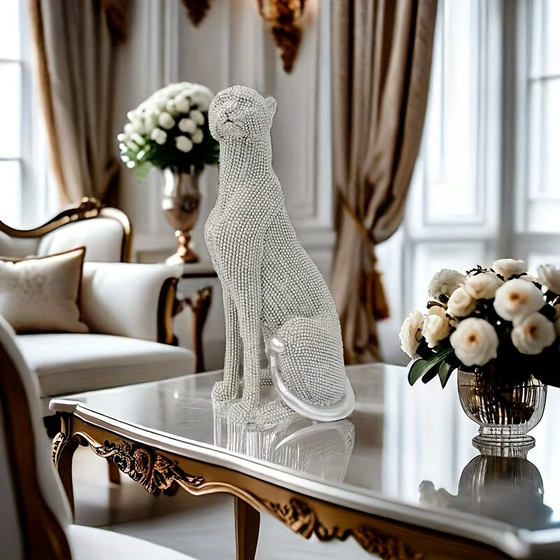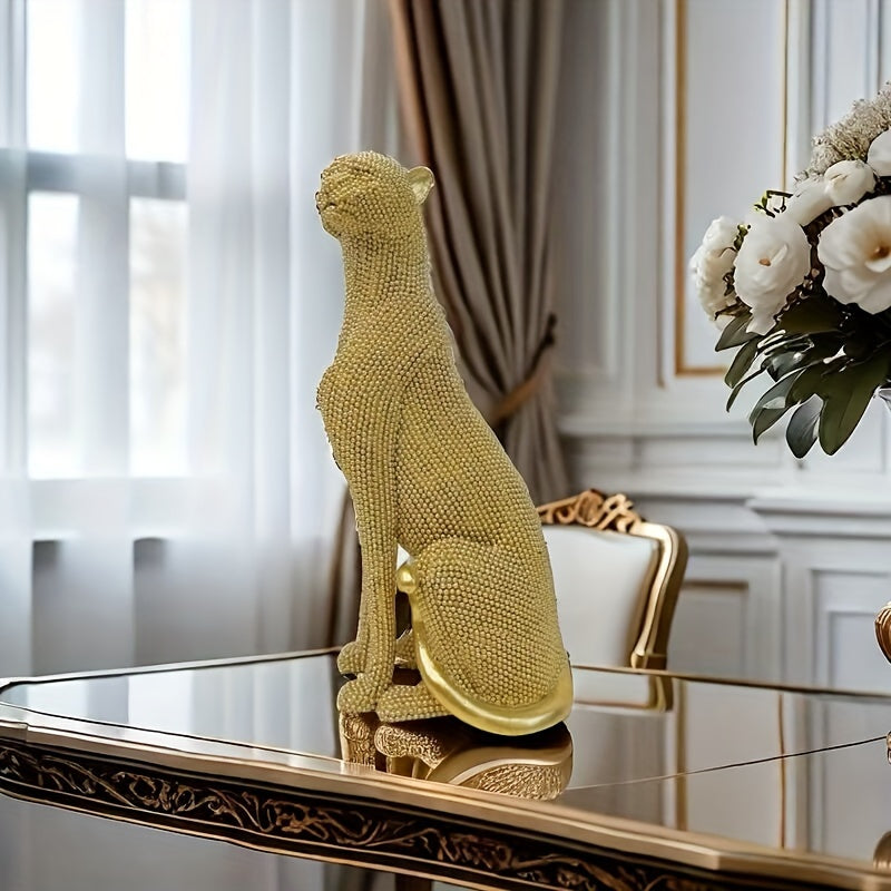A Glam Style apresenta uma escultura em resina com um leopardo sentado adornado com contas, perfeita para quem procura um toque de glamour na decoração da casa, estudo ou escritório. Ideal como presente festivo, especialmente para Natal, Ação de Graças e Ano Novo.
