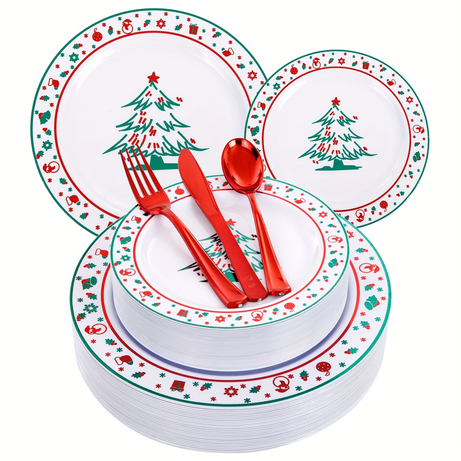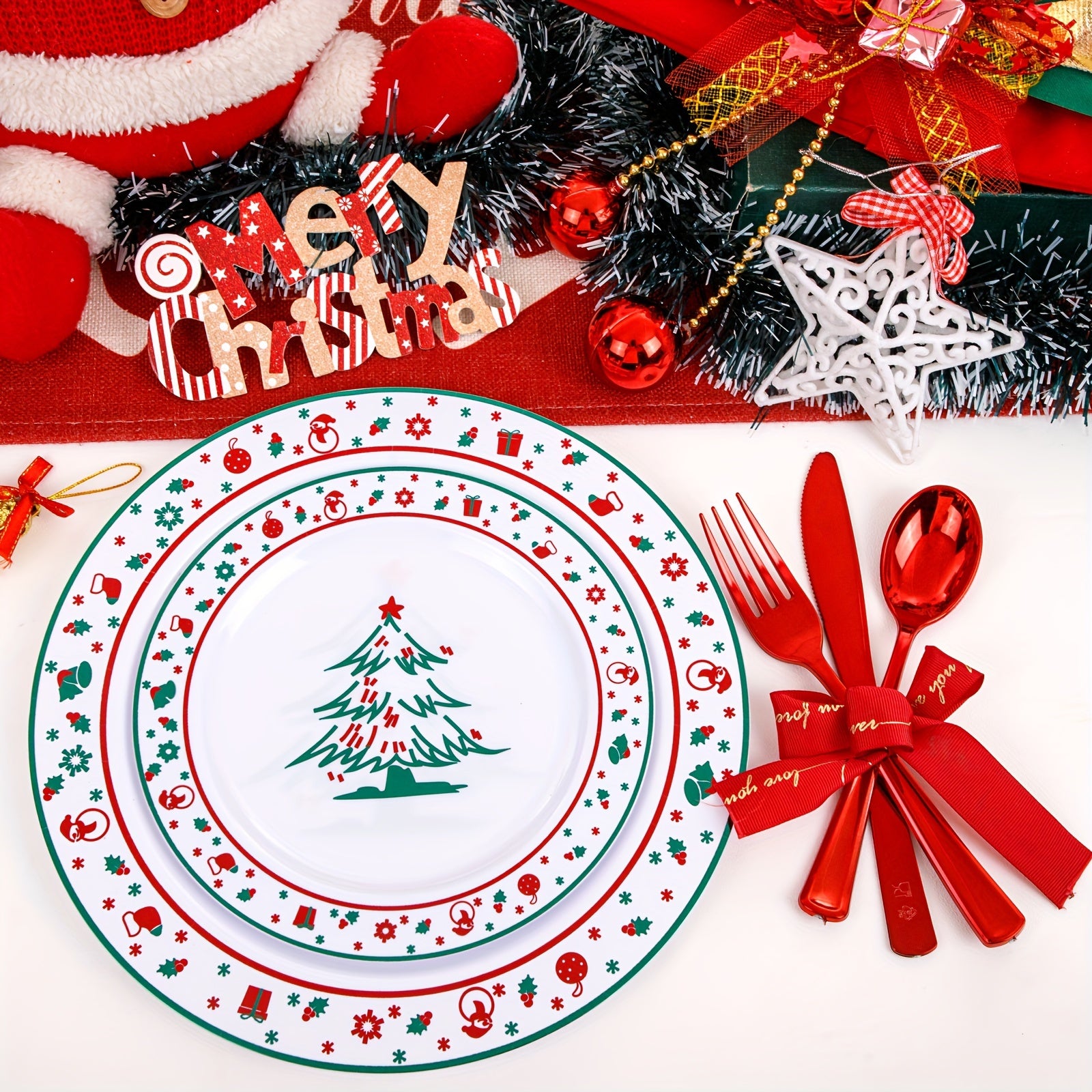 Este Conjunto Pratos Plásticos Natal Vermelhos Verdes com Árvore combina estilo festivo com praticidade, ideal para mesas de Natal cheias de cor e encanto. Leve, resistente e fácil de limpar, é perfeito para famílias com crianças, eventos ao ar livre e celebrações com muitos convidados.