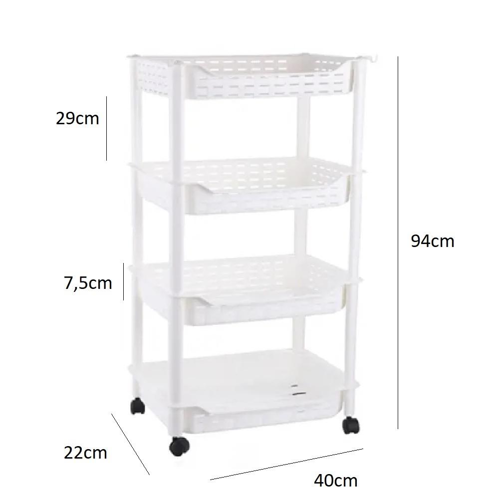 Carrinho Organizador Multiuso 4 Prateleiras – Branco