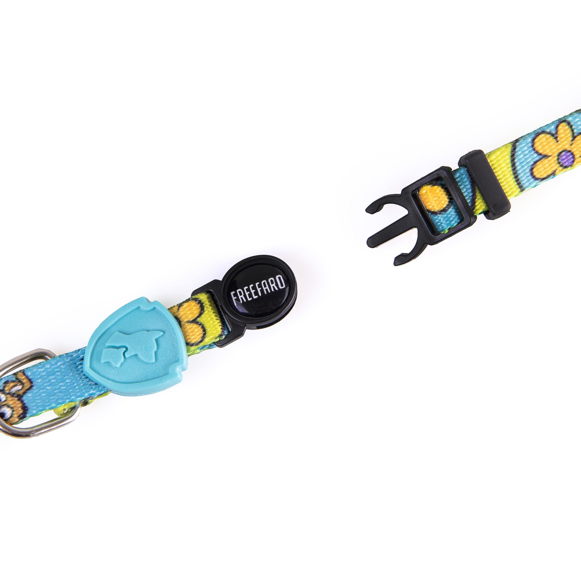 A Coleira para gatos da FreeFaro é uma opção segura e confortável para o seu felino. O fecho de segurança é um fecho de pressão diferente dos tradicionais, evitando que ocorra acidentes. Além disso, a coleira possui acabamento suave e macio, para não machucar o pescoço sensivel dos gatos. Feita com materias resisitentes e duráveis, a coleira para gatos da FreeFaro vem em diversos estilos e com diferentes estampas para deixar seu gato ainda mais estiloso.