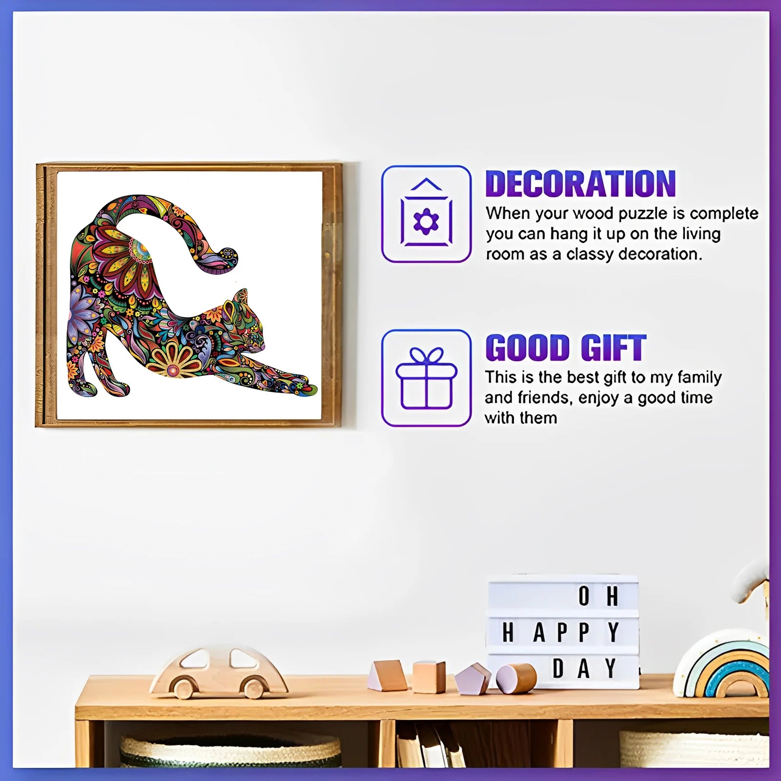 Quebra Cabeça De Madeira Exclusivo Padrões De Flores E Gatos