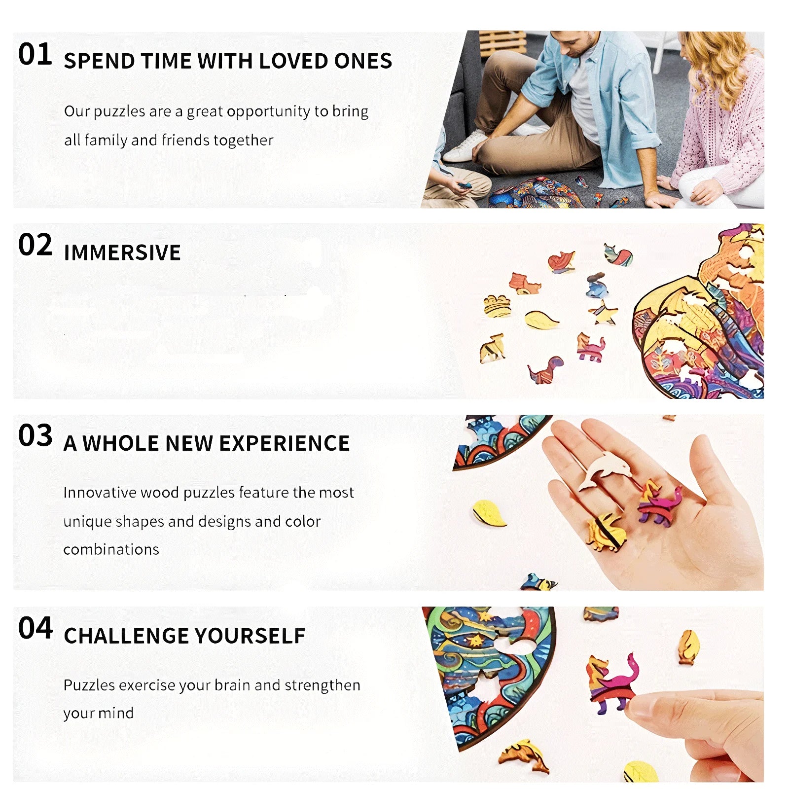 - A madeira oferece uma sensação tátil superior e durabilidade em comparação com puzzles de papel.