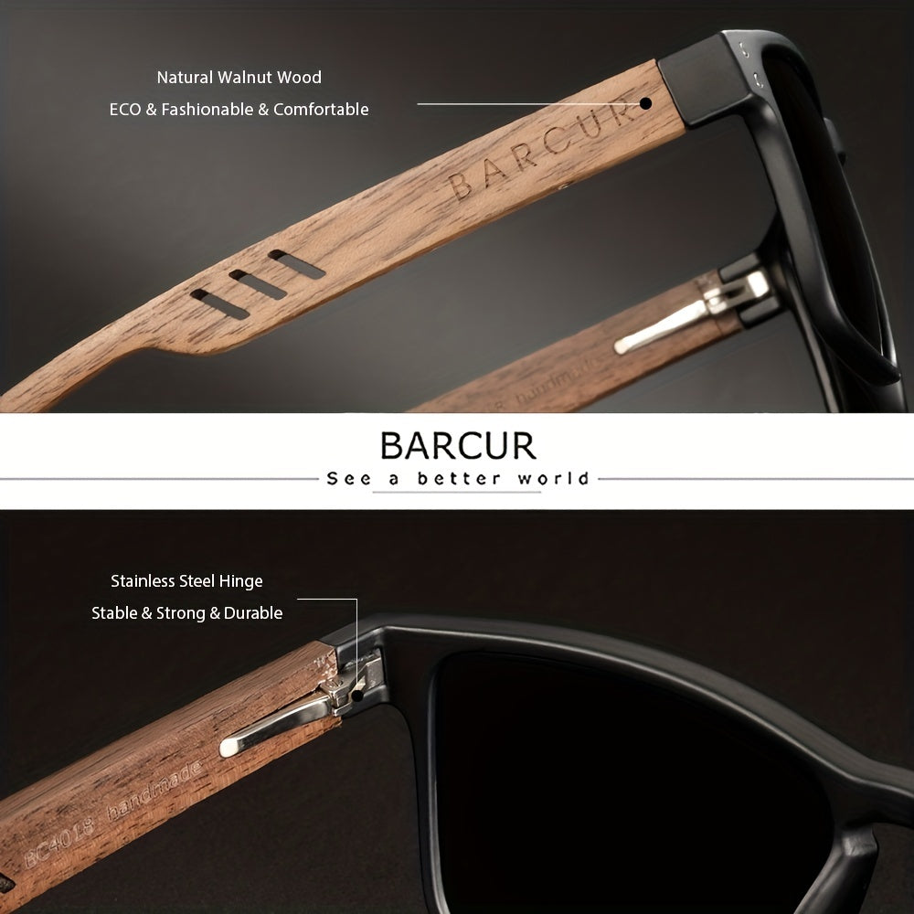 BARCUR Óculos de Sol de Madeira Polarizados UV400 Unissexo combinam estilo vintage com proteção de alto desempenho para o dia a dia. Ideal para quem procura elegância prática e visão clara em qualquer situação.