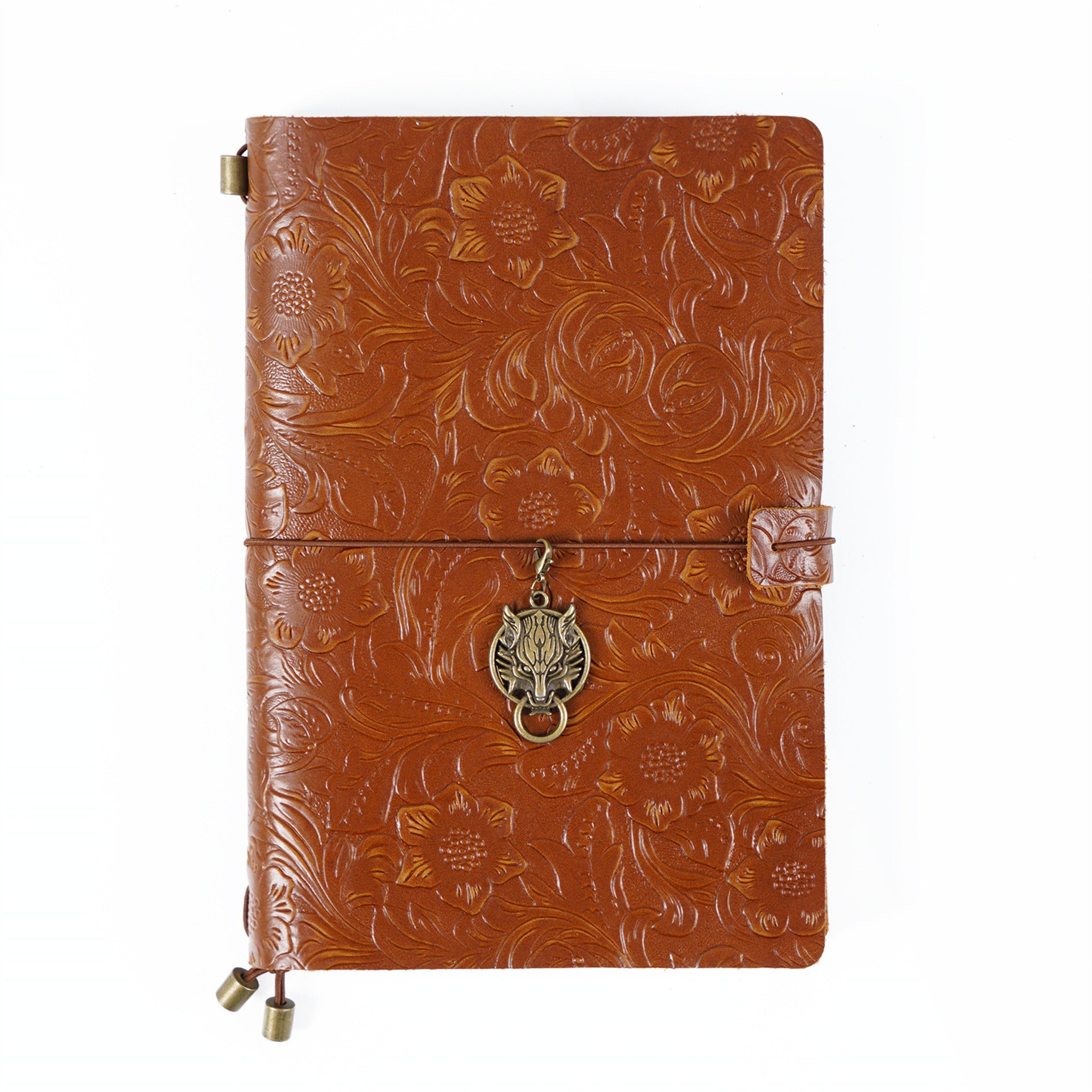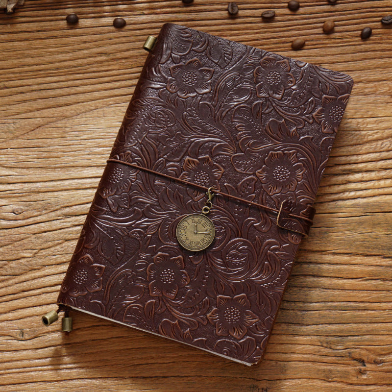 Caderno de Couro Vintage Gravado para Viagem com 180 Folhas