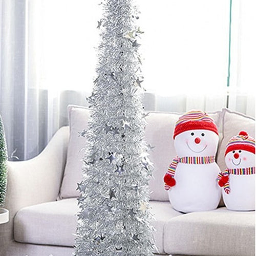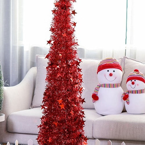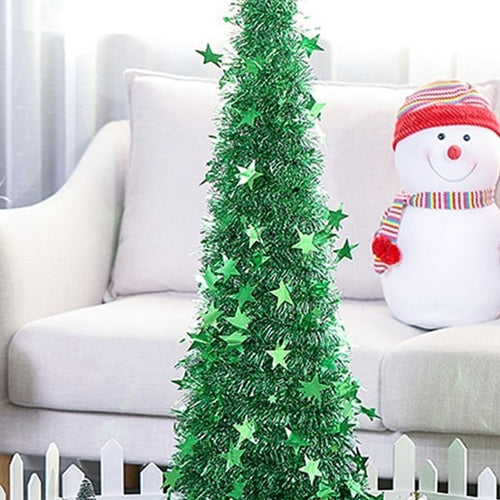 Descubra uma árvore de Natal artificial com acabamento em lantejoulas, perfeita para quem busca elegância e praticidade na decoração. Dobrável e telescópica, é ideal para casas, festas e decorações festivas.