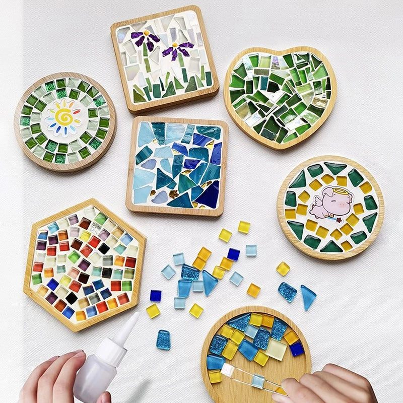 Tapete De Copos Mosaic De Bambu Feito À Mão DIY Infantil