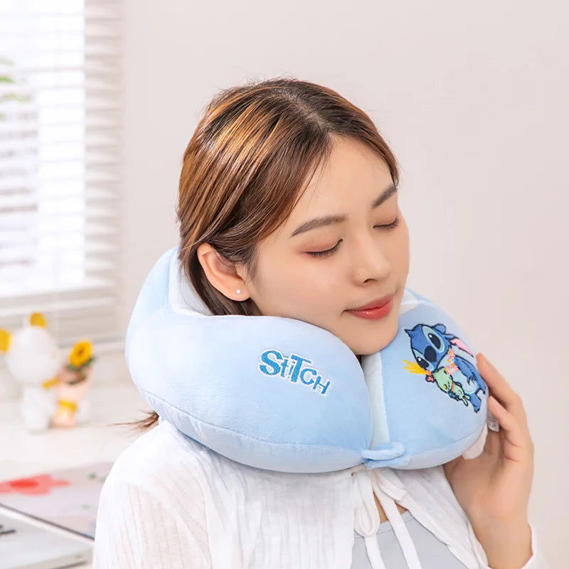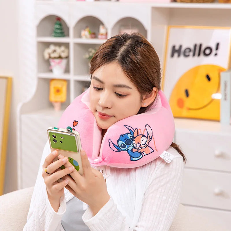 Travesseiro de Pescoço Lilo e Stitch - Forma U Portátil para Viagem
